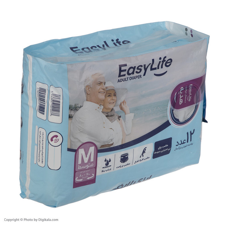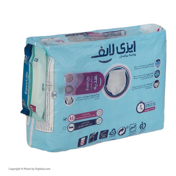 پوشینه بزرگسال ایزی لایف مدل شورتی سایز متوسط بسته 12 عددی