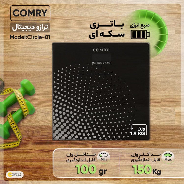 ترازو دیجیتال کمری مدل Circle-01به شما این امکان را میدهد تا به راحتی و با دقت بالا وزن خود را اندازهگیری کنید. این ترازو به عنوان یک ابزار چندمنظوره، برای مدیریت بهتر وزن و بهبود سلامتی در خانه به کار میرود. ترازو دیجیتال کمری مدل Circle-01از شیشه مشکیرنگ نشکن با ضخامت 8 میلیمتر ساخته شده و در برابر وزن بالا و ضربه مقاوم است. این ترازو توانایی محاسبه وزن تا 150 کیلوگرم را دارد و چنانچه وزنی بیش از 150 کیلوگرم روی آن قرار گیرد، بر روی نمایشگر آن خطا ERROR ظاهر میشود. از ویژگی مهم این ترازو میتوان به سیستم خاموشی خودکار آن اشاره کرد. به این ترتیب که در صورت عدم استفاده از این محصول، نمایشگر آن به صورت خودکار خاموش شده و این قابلیت منجر به صرفهجویی در مصرف باتری آن میشود. ابعاد کلی این محصول 30x30x3.3 سانتیمتر و وزن آن 1.980 کیلوگرم است. ترازو دیجیتال کمری مدل Circle-01 از یک عدد باتری دکمهای لیتیومی یا همان باتری CR2032 تغذیه میکند. (لازم به ذکر است این گونه از باتریها با نام باتری ساعت نیز شناخته میشوند.) بر روی بدنه این ترازو نمایشگر LCD کوچک تعبیه شده و با وجود اندازه کوچک خود، اعداد و ارقام را با وضوح بالا و بسیار خوانا به شما نمایش میدهد. اگر به دنبال یک ترازوی دیجیتال با امکانات کامل و قیمت اقتصادی هستید، ترازو دیجیتال کمری مدل Circle-01گزینهای عالی برای شما خواهد بود.